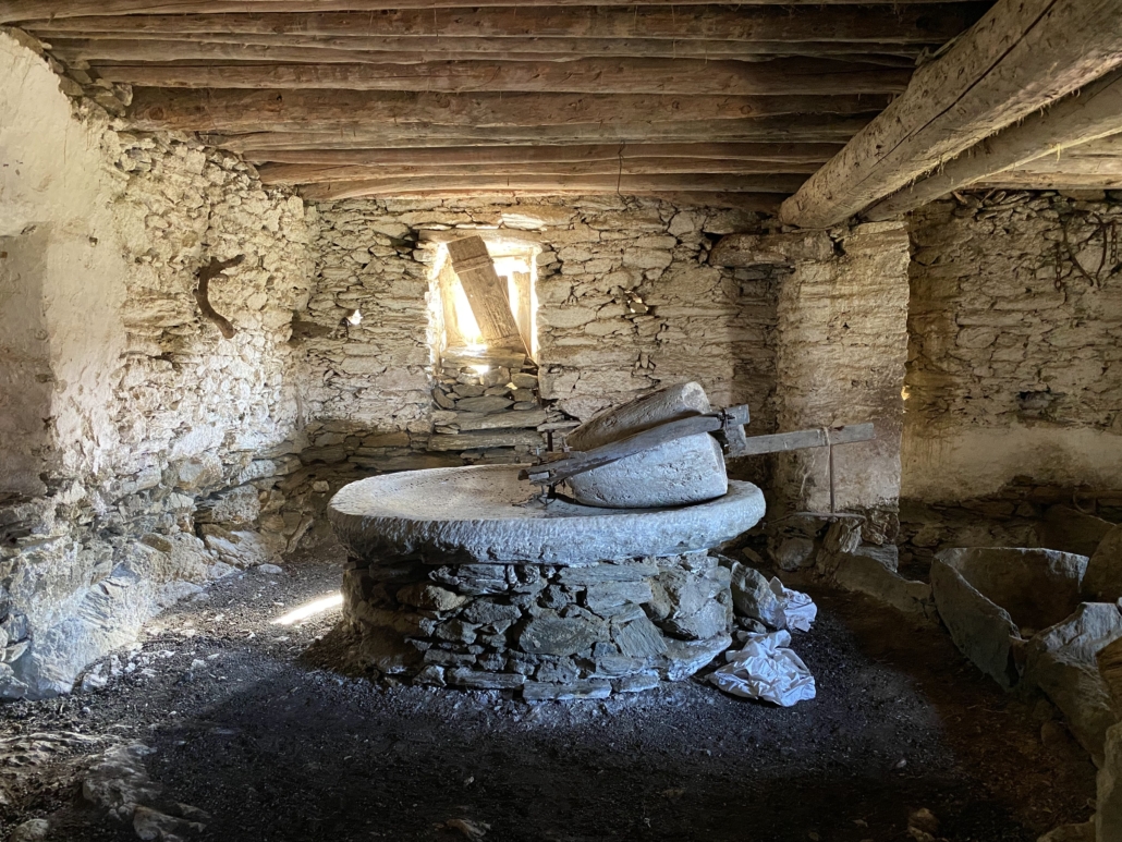 A beautiful route to explore northern Andros with the stunning view over the lighthouse Fasa and the Kavo d’ oro passage between Euboia and Andros. Two olive presses, the old stone bridge over the river Murtiza, the Tarasis spring, the churches of Agia Mavra and Agios Ioannis, old farms, the lime kilns at Rethi, the lovely deserted houses of Spartia are some of the attractions.