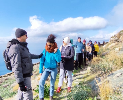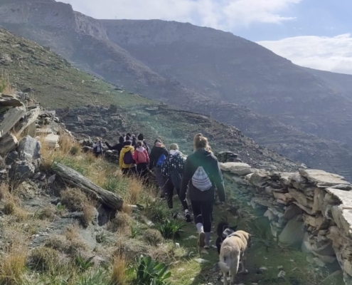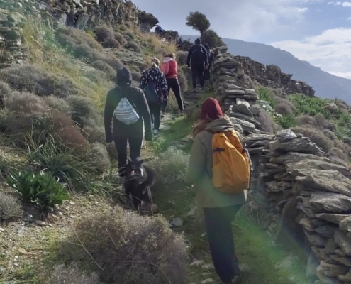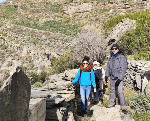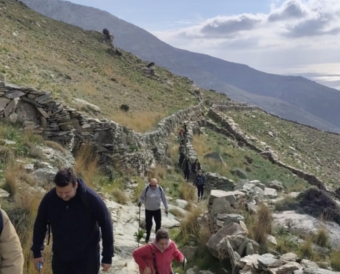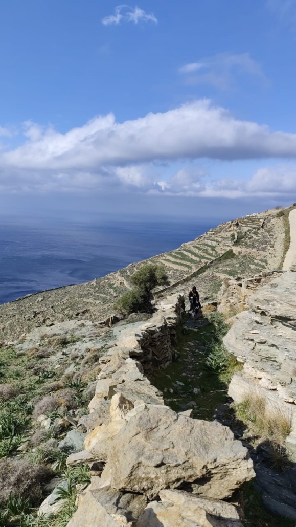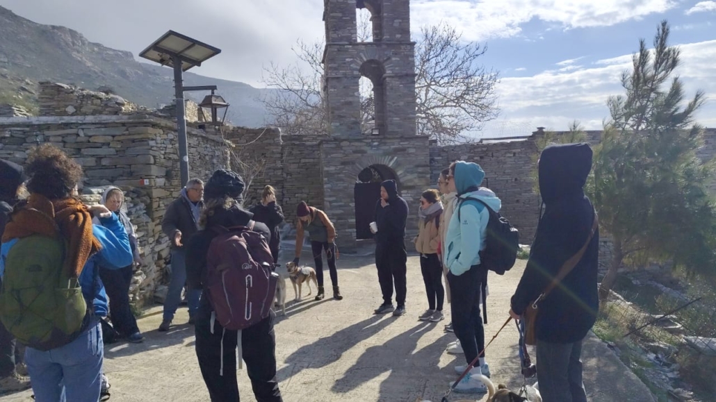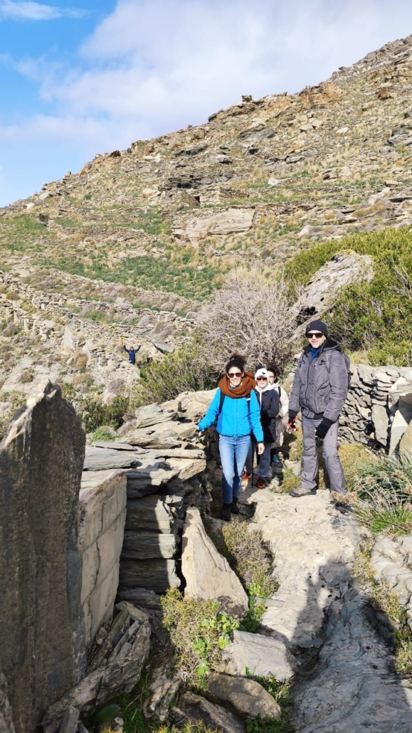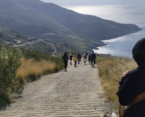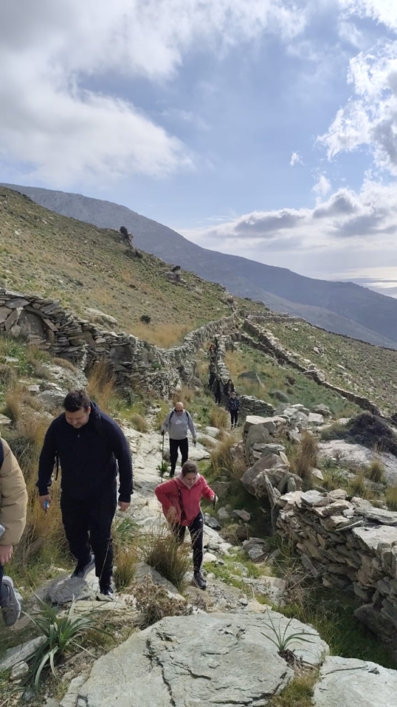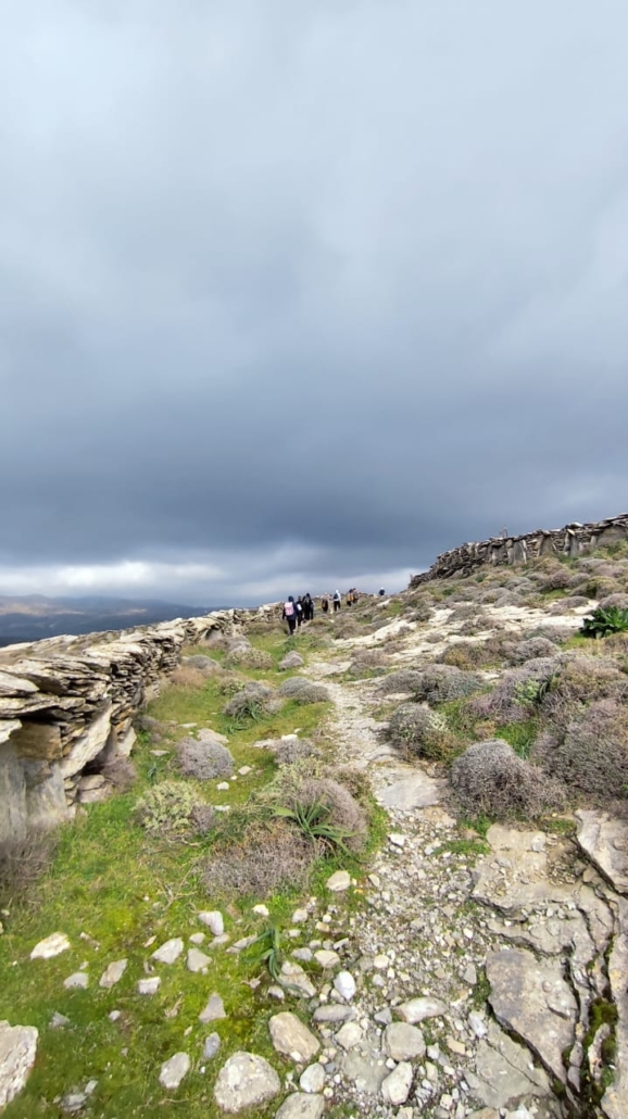 Το Σάββατο 17 Ιανουαρίου, 22 πεζοπόροι από διάφορες περιοχές της Άνδρου (Φελλός, Γαύριο, Χώνες, Καππαριά, Χώρα, Μένητες, Μεσσαριά, Στραπουριές, Αποίκια), αλλά και επισκέπτες από την Αθήνα, που δεν πτοήθηκαν από τον δυνατό και παγωμένο άνεμο, συγκεντρωθήκαμε στο Μοναστήρι της Παναγίας της Τρομαρχιανής για τη δεύτερη πεζοπορία φροντίδας της χρονιάς στην κυκλική διαδρομή Τρομαρχίων.