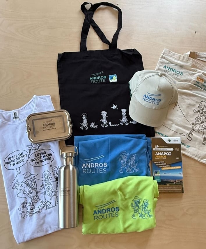 Επιλέγοντας τα προϊόντα του Andros Routes, στηρίζετε έμπρακτα το έργο της ομάδας και συμβάλλετε στη διατήρηση και ανάδειξη του πλούσιου δικτύου μονοπατιών της Άνδρου, της πολιτιστικής της ταυτότητας και του φυσικού της πλούτου – με στόχο μια βιώσιμη ανάπτυξη που σέβεται το παρελθόν και εμπνέει το μέλλον του νησιού.