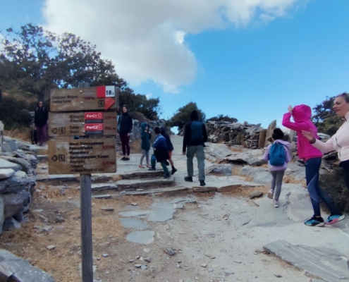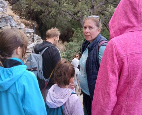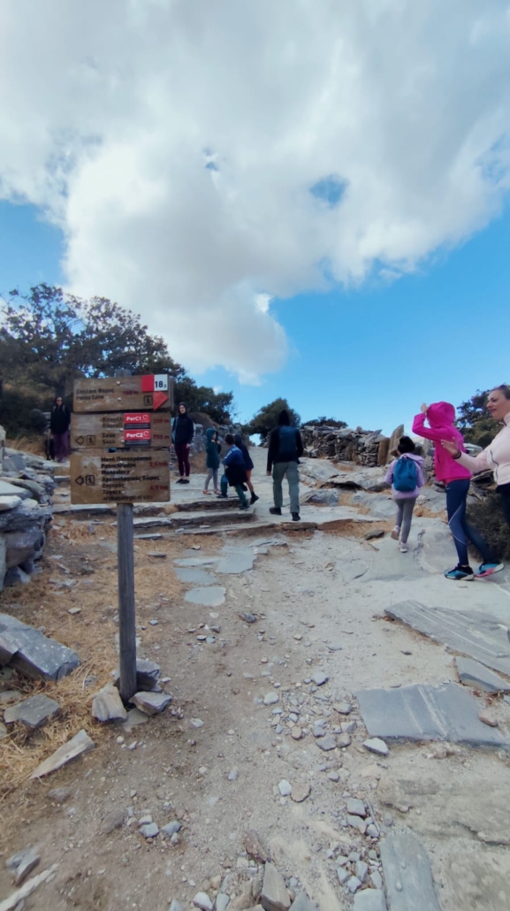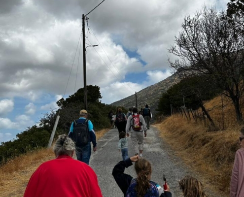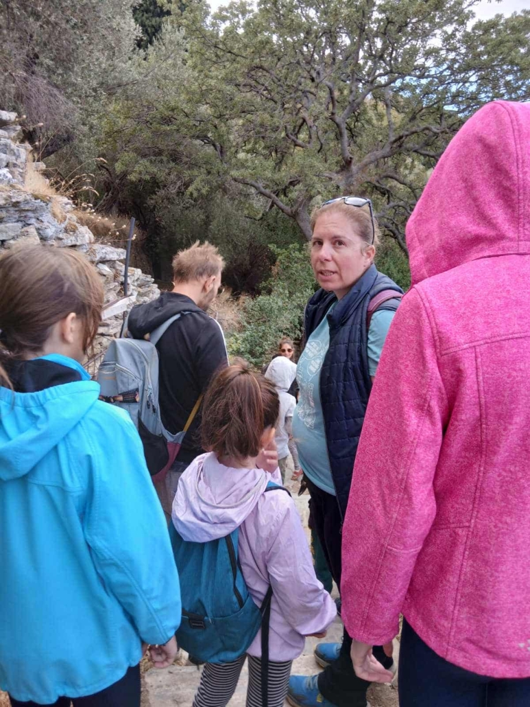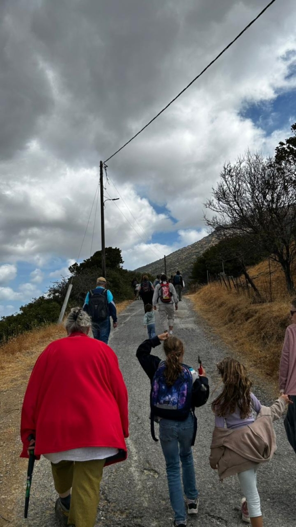Because the route lacks a “Route Angel” (volunteer caretaker), we were welcomed by the area’s coordinator, Katerina Pantazi, and Route Angel Valentini Deskoulidou. The weather wasn’t ideal for hiking — it was quite windy — but that didn’t dampen the excitement and anticipation of the hikers, young and old.